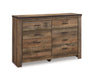 This bed and dresser set makes home on the range look so alluring. The aesthetic is earthy yet clean and sophisticated, with a rustic finish, plank-style details and nailhead trim that pay homage to reclaimed barn wood. Adding that much more show-stopping style.