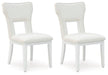 Embracing modern glamour, this dining chair is a dazzling addition to your dining area. A bright white lacquer finish and a contemporary cutout design give it a look all its own. The sumptuous upholstery wows with metallic thread accents.