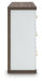 Looking to make a subtly striking statement in your bedroom? We've got you covered. This dresser's sophisticated two-tone treatment marries a warm brown finish over replicated walnut grain with a matte white finish. Rounded corners and a thick top radiate an air of modern panache, while sleek handles in a champagne finish add a sparkling touch to the spacious drawers. It’s a master class in contemporary yet comfortable character.