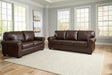 Sporting traditional elements including a roll arm frame with nailhead trim for a punch of character, this loveseat provides here-and-now relevance...