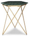 This accent table redefines classic glamour for the modern age. It draws from art deco influences with its geometric goldtone base, while the green marble top will be the envy of every guest. There’s no place quite like home, and this table crafts a contemporary space you’ll always want to come back to.