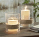 Instantly add interest to any room in your home with this set of candleholders. Pairing the natural beauty of seeded glass and hemp rope, these are the perfect shabby chic accent for your living space.