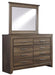 Get the look of posh barn wood without setting foot in a salvage yard. Replicated rough-sawn oak of this dresser and mirror set has a vintage finis...